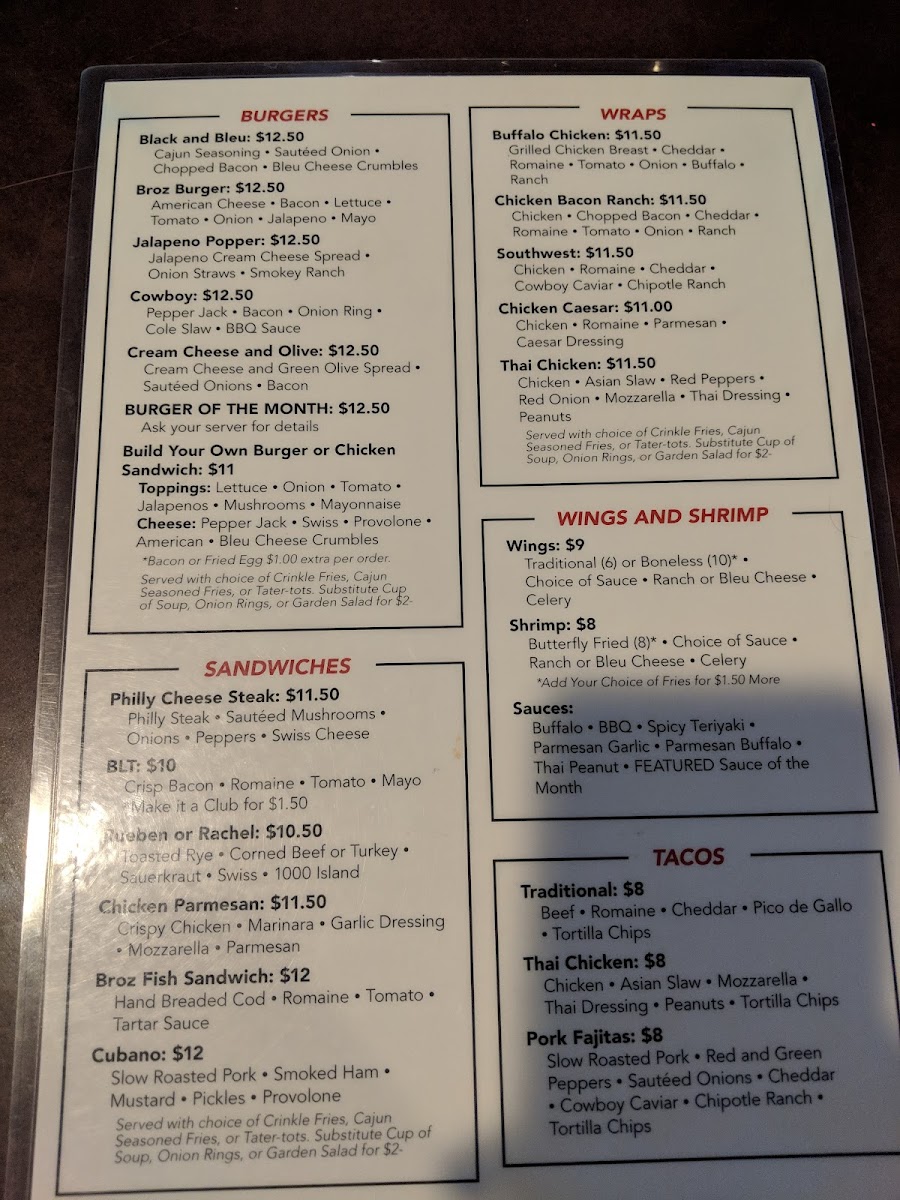 Broz Sports Bar and Grill Menu